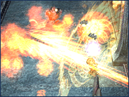 剣の先から炎を飛ばし、遠くの敵にもダメージを与えることが出来る。
