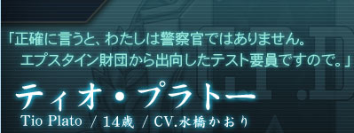 大陸有数の技術力を持つ「エプスタイン財団」に所属している少女。 新装備「魔導杖」の実戦テストのため、クロスベル警察に出向してきた。 クールな言葉と素っ気ない態度が印象的だが、別に人嫌いというわけではない。 強力な魔法攻撃を繰り出せる魔導杖は、モードに応じて様々な形状に変形する。