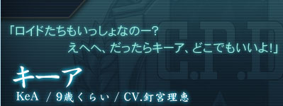 とある場所でロイドたちが保護する天真爛漫な少女。 記憶を失ってしまっているが、それを感じさせない明るさを持つ。 人懐っこく好奇心旺盛で、ロイドたち全員にもあっという間に懐くが、誰も知らない知識を持っているなど、不思議なところを垣間見せることも。