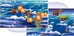 な、なんと、冒険中に横スクロールのシューティングゲームが遊べる??プロペラを前後にくっつけて防御したり、