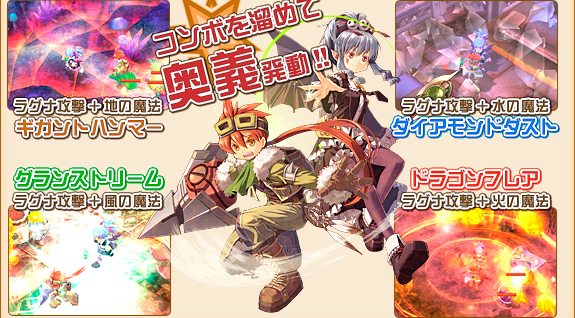 | 敵を連続で倒すとコンボが貯まっていきます。コンボをためると、ラグナとアルウェンが協力して必殺技「奥義」を発動することができます。奥義は、アルウェンが使用する魔法によって効果が異なります。 |