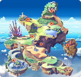 数多の浮遊する大陸や島々によって構成された世界。かつてこの世界を支配していた魔法文明(神聖王国時代)においては、その魔法技術の精華である「ワープゲート」が各地を結んでいました。現在ではそれら古代の技術は失われてしまいましたが、その衰退の過程で、逆に発展を遂げた機械技術を用いた「飛行機」が各地を行き来しています。